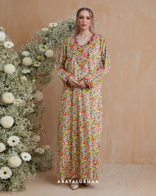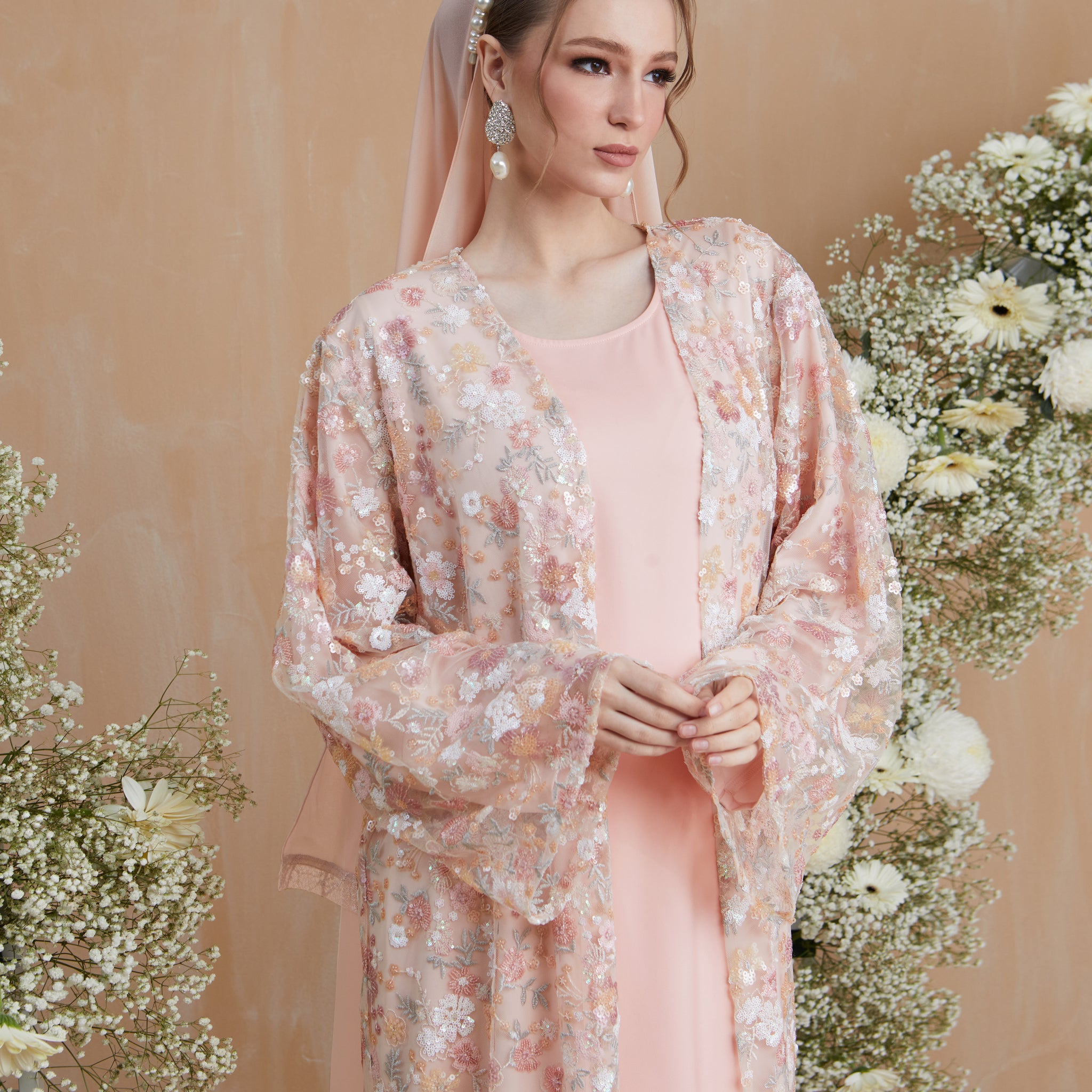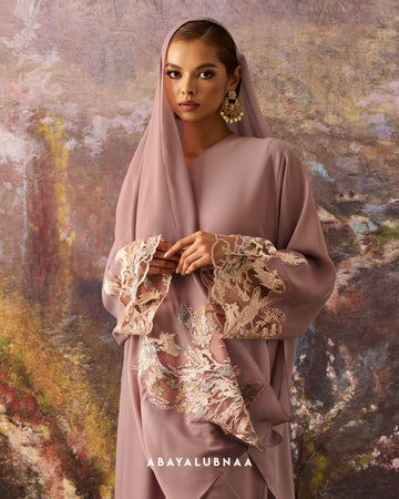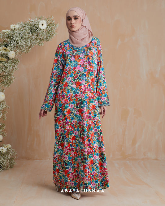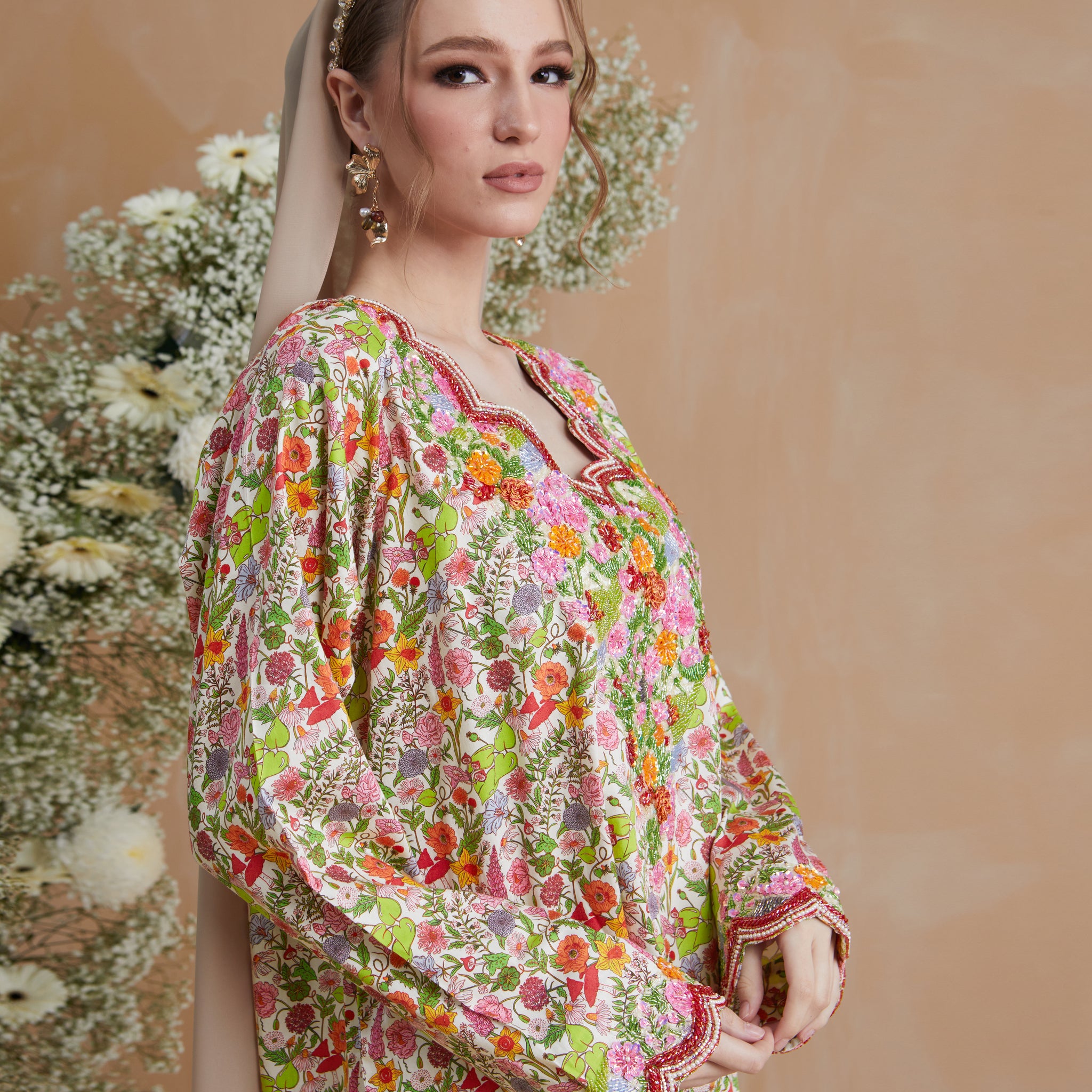 Intricate embellishments and fun florals make Amara an abaya that is contemporary yet timeless. Cut in a relaxed straight cut silhouette, Amara is crafted in soft Nidha fabric, weighted on the bottom by the sparkly stones to enhance its flowing shape.