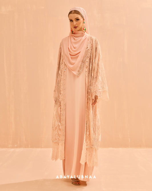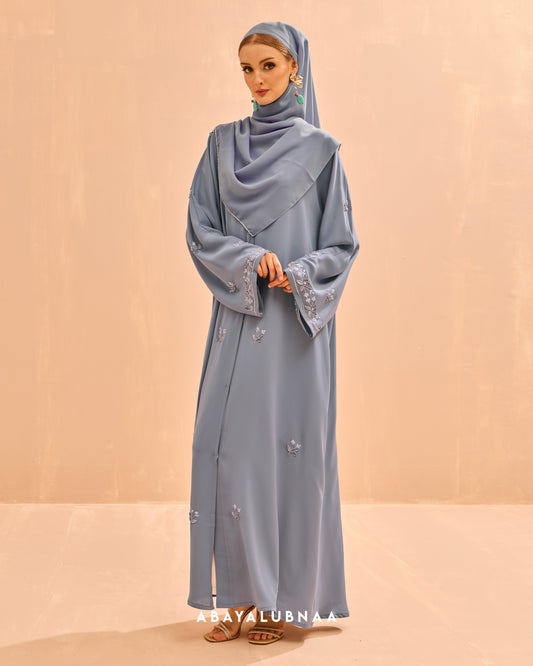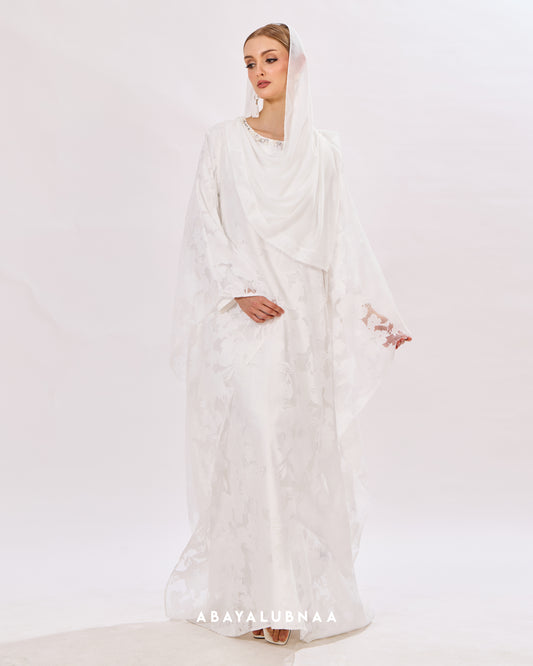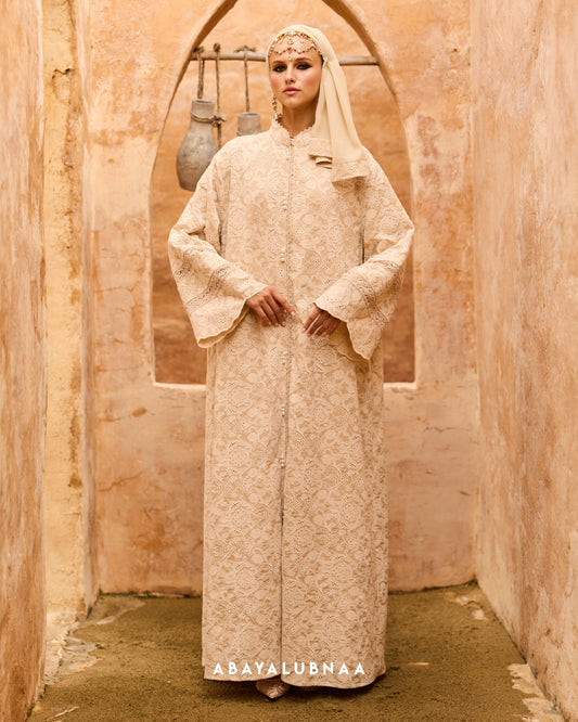 Luxurious and decadent, Tasnim, Nasreem and Layla Reinterpreting the traditional Moroccan silhouette, this modern abaya brings the beauty of botanicals to life in a contemporary fashion.