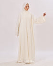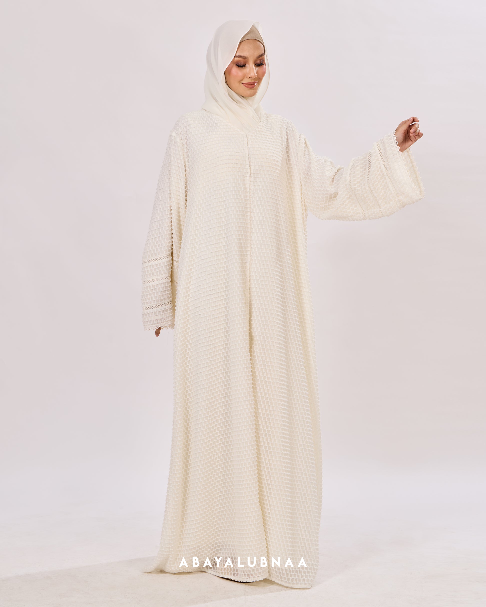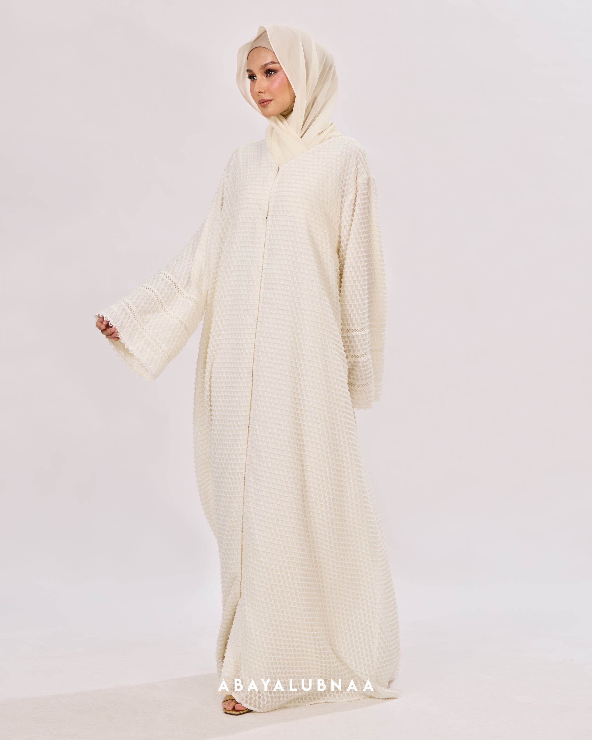 Amalina is the abaya for ladies leaning towards a more geometrical aesthetic. A fully lined abaya featuring wide sleeves and side pockets, Amalina is a pretty and practical design that transitions from Iftar to tarawih seamlessly.