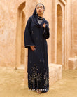 Ideal for a fancy Raya event, Hanan is the abaya you pick when you want to dress up for a special occasion. Pair it with elaborate accessories for a more maximalist approach to your festive styling.